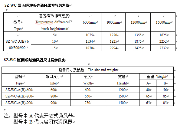 順坡采光通風(fēng)器型號(hào)選用
