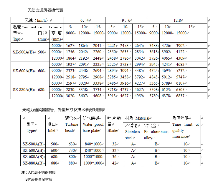 SZ松治500A(B)/600A(B)型自然通風(fēng)器